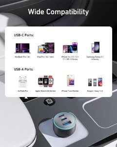 Anker USB-C Car Charger is a compact and powerful charging solution with a 67W PowerIQ 3.0 USB-C port