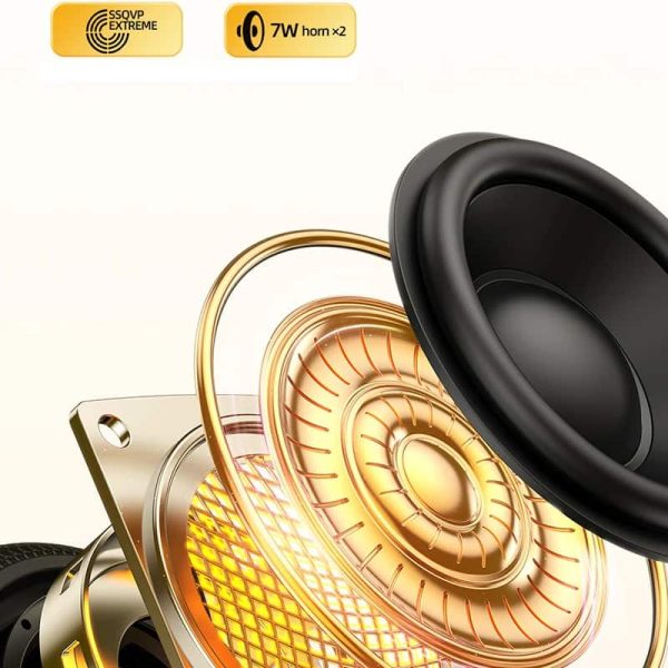 - Dual 7W speakers for stereo sound and deep bass