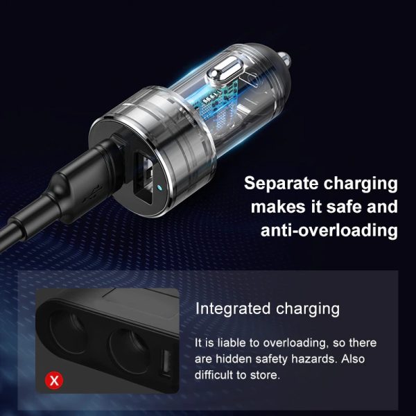 - Extend your car cigarette lighter to 2 lighter socket and two USB ports