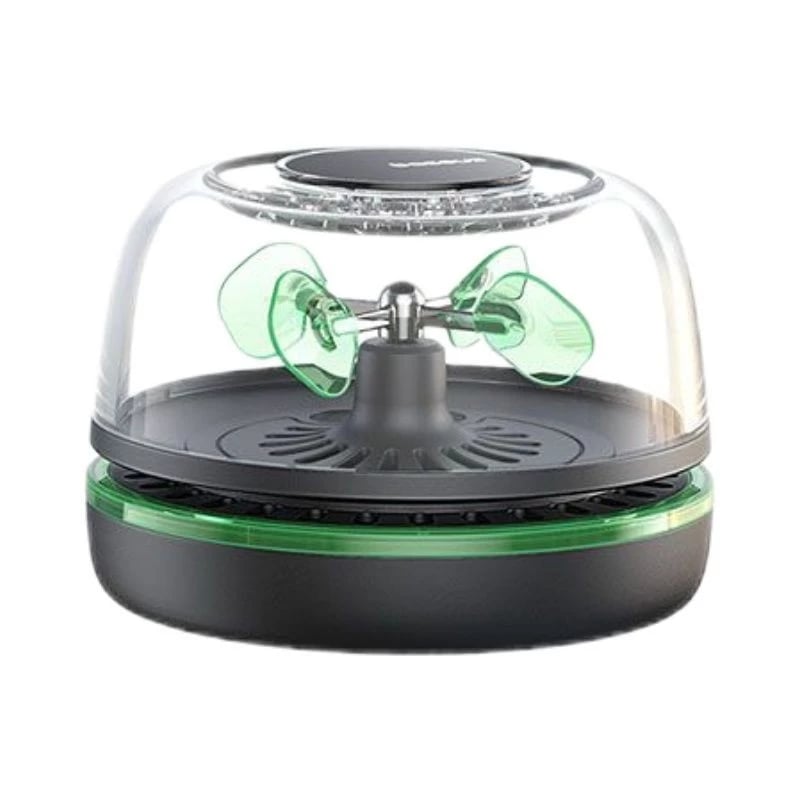 - Solar powered:Â It features a solar panel that powers the internal rotating disc, which helps to spread the fragrance throughout the car without needing batteries or external power.