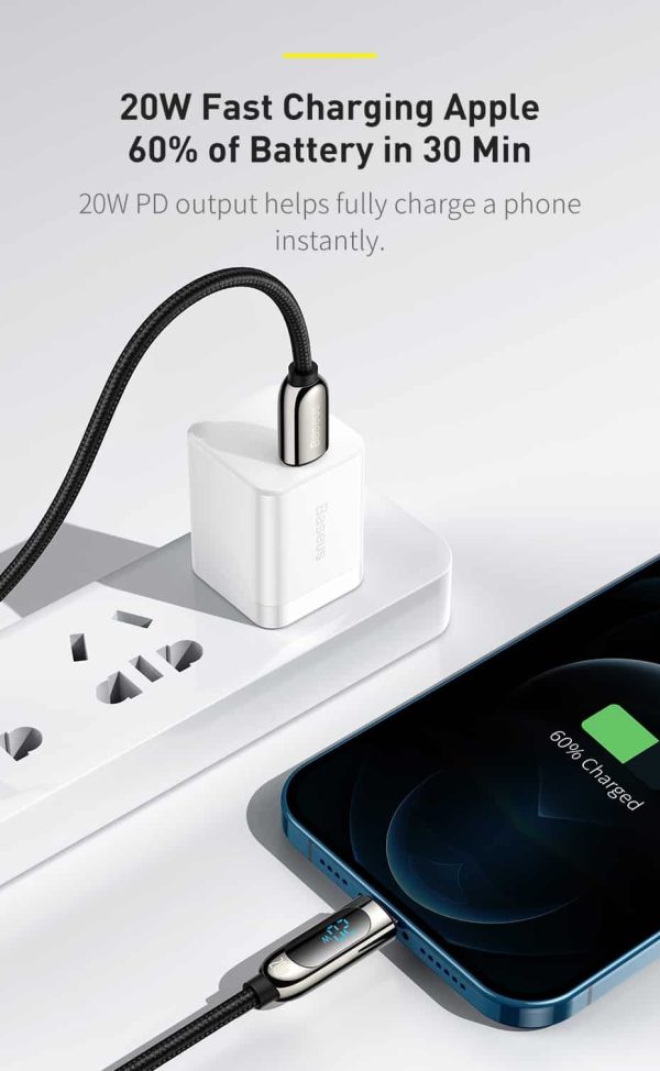 Baseus USB-C to USB-C cable will instantly charge your device with Type-C port. The cable also has a display that informs you about the power intensity. With CATSK-B06 you can charge your MacBook Pro 13 in 2.5 hours or send a 1G file in 24 seconds.