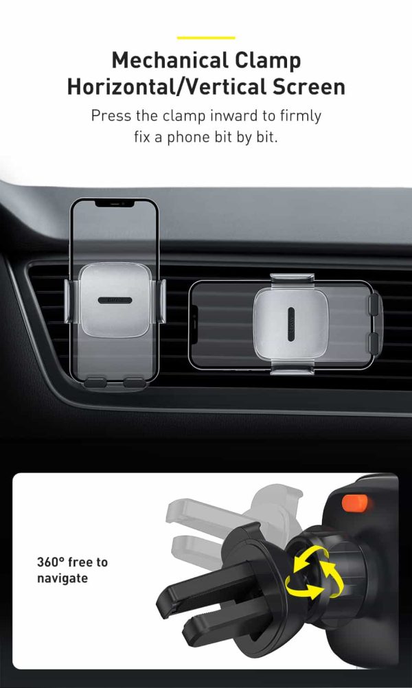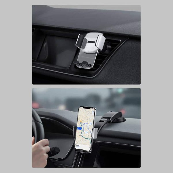 BASEUS Easy Control Clamp Car Mount Phone Holder (A Set) for Air Vent/Dashboard – Dark Grey