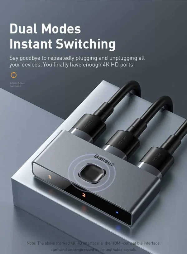 Baseus Matrix 4K HD Switch HDMI-compatible Splitter 1×2/2×1 Video Adapter For Coumptuer PS5 TV BOX 2 In 1 Out Bi-Direction HD Switcher