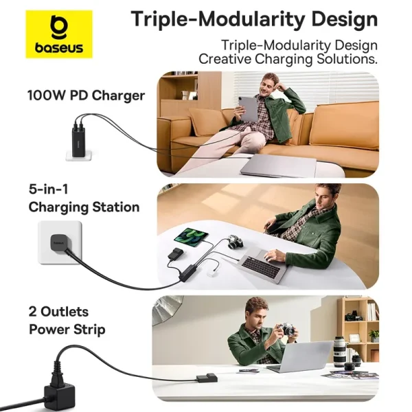 Baseus PowerComb 5in1 GaN6100W 3 USB C 1x USB A 1x AC Fast Charger for Macbook Samsung Iphone TWS Smart Watch