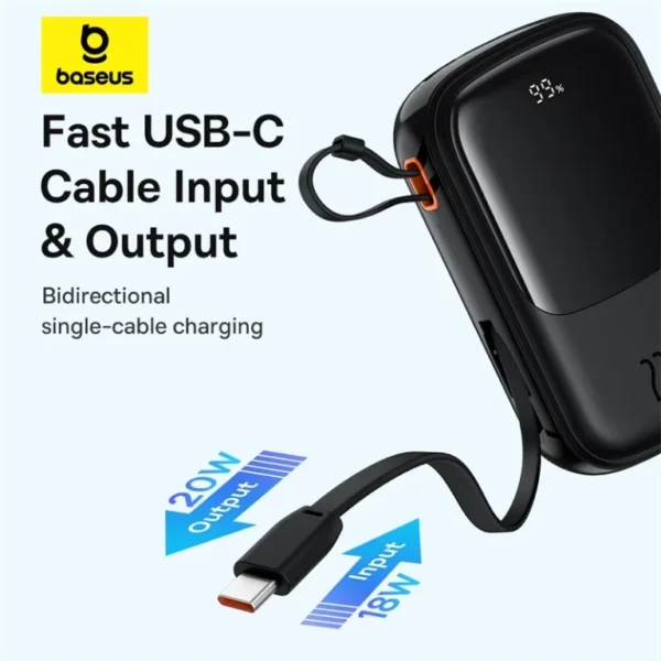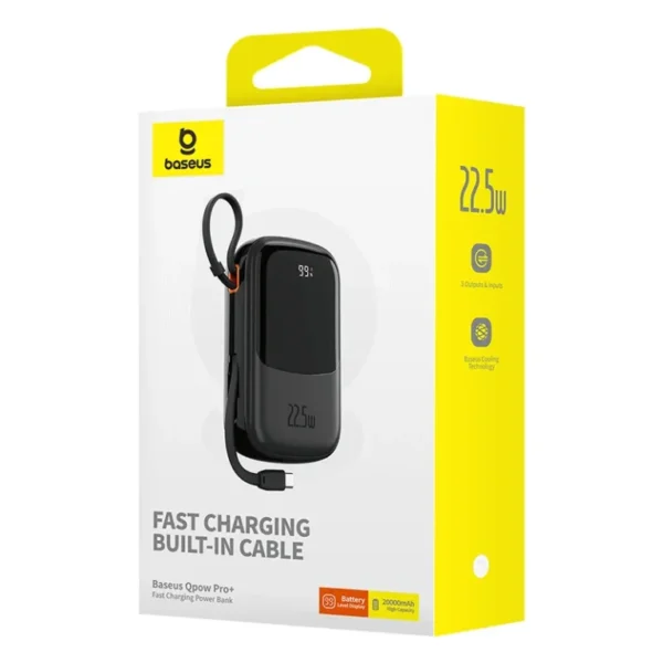 Baseus Qpow Pro+ 20000mAh 22.5W Digital Display Fast Charging Power Bank with Built in Type-C Cable