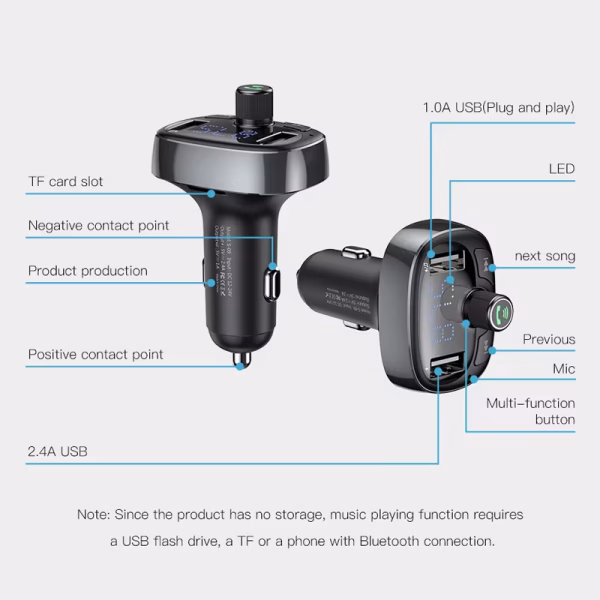 Baseus S-09 T-Typed Dual USB Bluetooth Car Charger