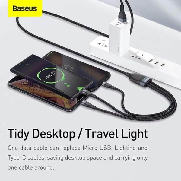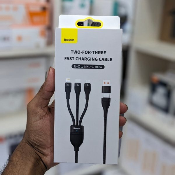 BASEUS Flash Series Two-for-Three Fast Charging Data Cable U+C to Micro+Lightning+Type-C 100W Charging Cable – 1.2M
