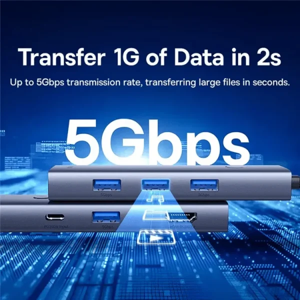 - Transfer 1G of Data in 2 Seconds: Maximum 5Gbps transmission rate with the 4 USB3.0 ports, much faster than USB2.0