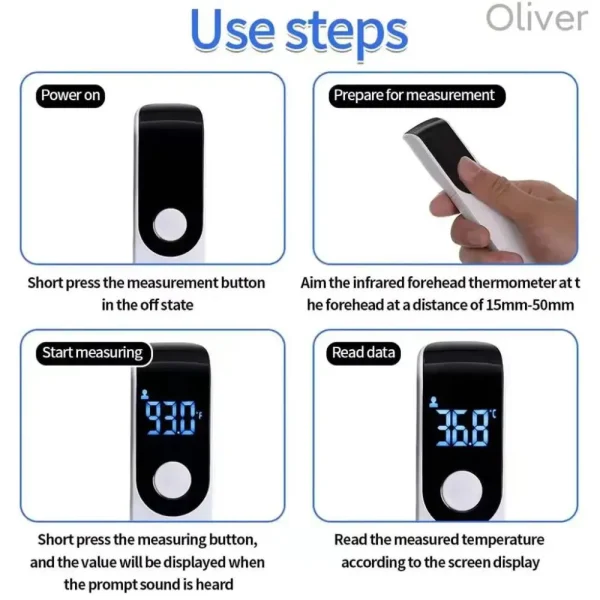 - Instructions for use: Long press to switch between Fahrenheit and Celsius in the off state, long press to switch the human body and object temperature measurement mode in the power on state.