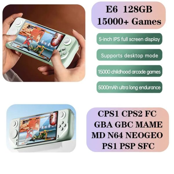 E6 Handheld GAME Console Portable Video Game Support 5-inch IPS 60Hz Screen Retro Gamebox Support PSP PS1 15000 Games