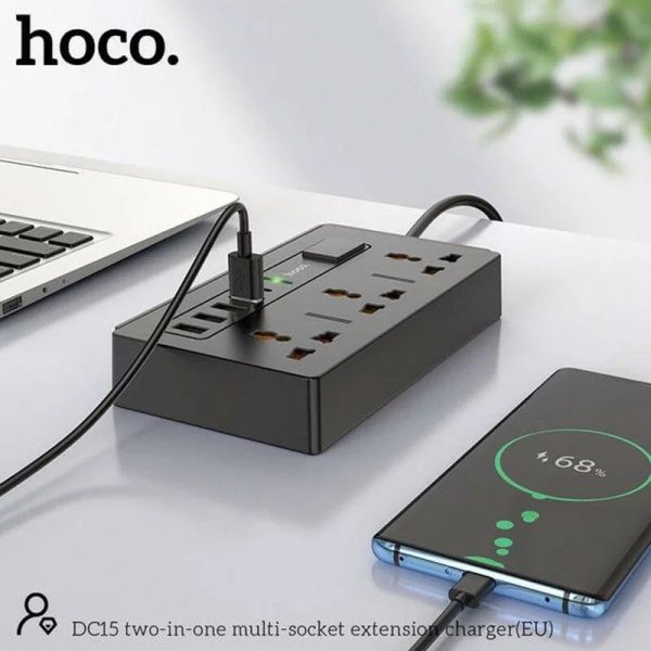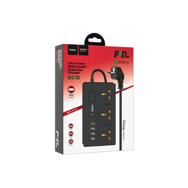 • Hoco DC15 2-in-1 Multi-socket (4 USB ports + Type-C) supports 30W charging, Quick charger, PD 18W,