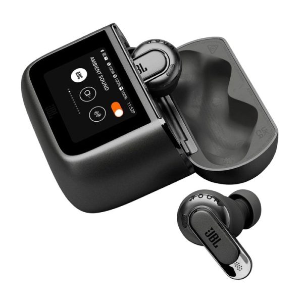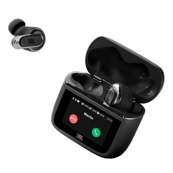 • Leave your phone in your pocket. JBL Tour Pro 3’s newly redesigned Smart Charging Case has all the features you need to fully control and customize your listening experience and the earbuds settings in multiple languages, right from the case. Use the bigger, clearer 1.57″ touchscreen to see what song is playing or who’s calling you, or personalize the tactile screen with your favorite photo. Check the dynamic lock screen to get info on battery life status, time, messages etc.