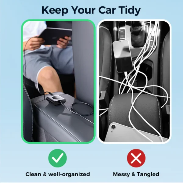 - The 1.5-meter extension cord allows rear-seat passengers to easily use the charging port