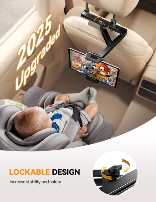 • Adjustable and Foldable Design: The bracket can be folded and extended, with a knob lock for secure positioning, allowing single or multiple passengers to share the screen