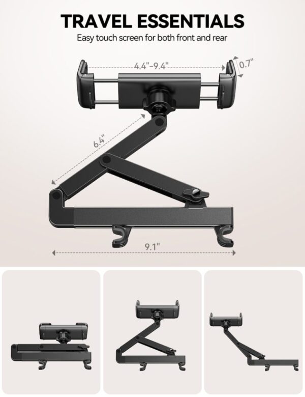 • Wide Compatibility: Designed to fit headrests with 70-158mm spacing and accommodate devices ranging from 4.7 to 13 inches in size