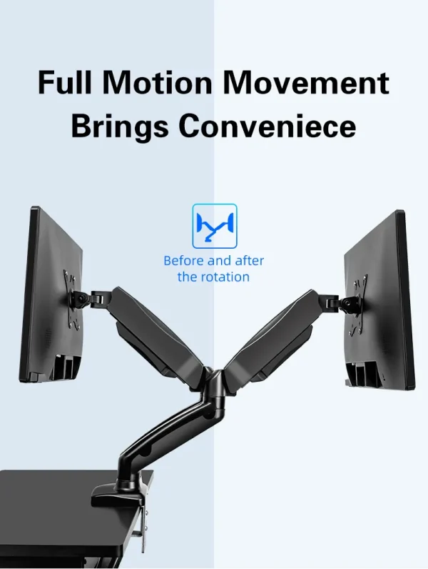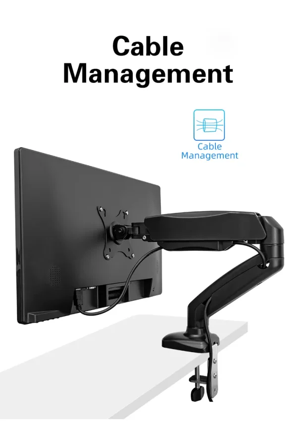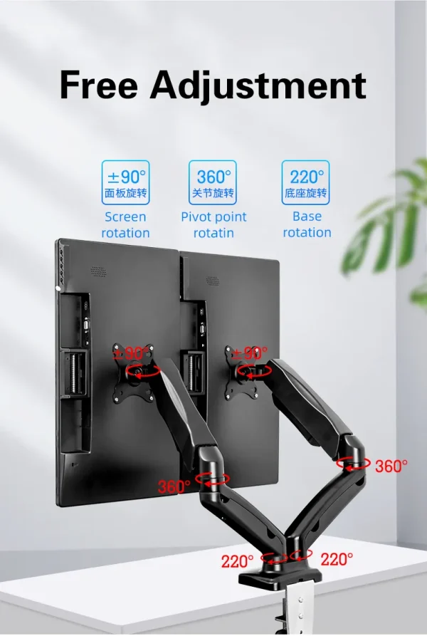 - Effortlessly adjust two 14-27″ monitors with smooth, self-balancing arms (6.5kg capacity each). Gas struts ensure effortless positioning. Integrated cable management keeps your workspace clean.