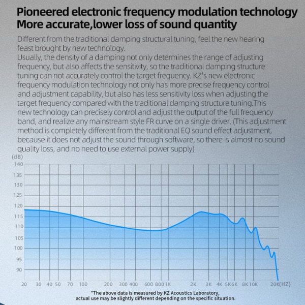 - Equipped with KZ’s new electronic frequency modulation technology, the ZVX offers integrated control from ultra-low to ultra-high frequencies, allowing for precise adjustment across the entire frequency spectrum. This enables the earphones to achieve any mainstream sound curve style.