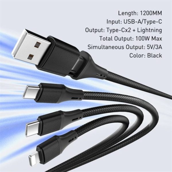 Ldnio LC97UC Two-for-Three 100W Fast Charging Cable