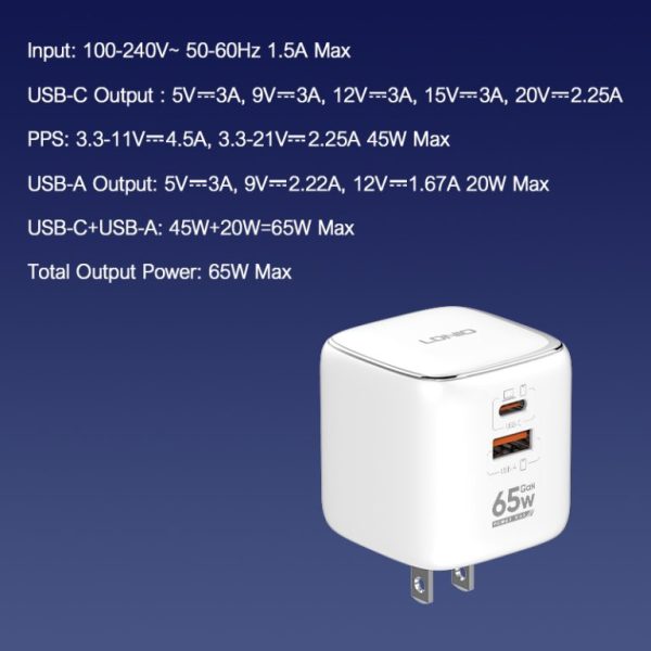 - USB-A Output: 5V-3A, 9V-2.22A, 12V-1.67A 20W Max
