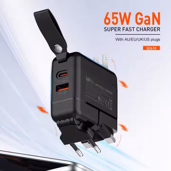 1. 65W GaN Technology: Employs GaN technology for efficient power delivery, offering quick and smart charging speeds.