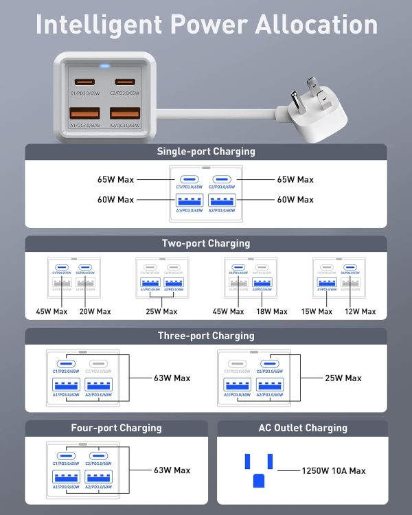 - USB-A1 Output: 4.5V/5A, 5V/4.5A, 5V/3A, 9V/3A, 12V/3A, 20V/3A 60W MAX