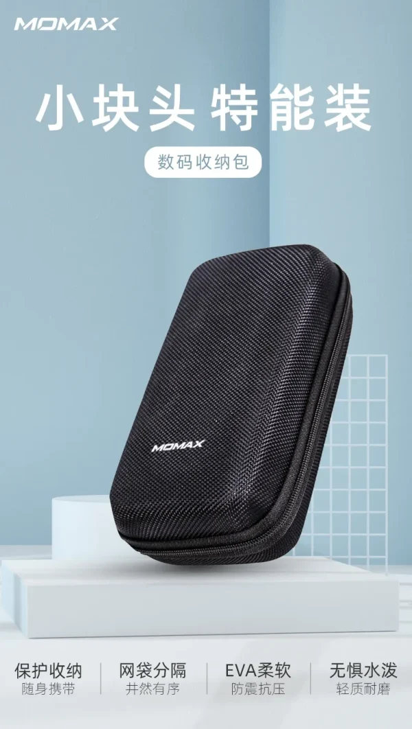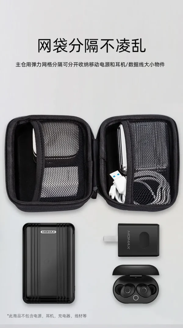 - A bag for storing digital accessories Momax can help you not to lose and carefully transport your favorite gadgets and various small items. The case has a number of convenient internal pockets separated by a grid.