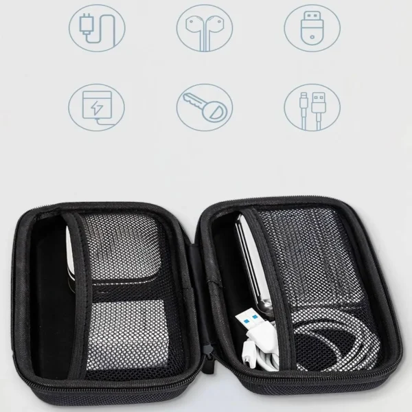 - The main compartment is divided with elastic mesh to store mobile power supplies and earphones/data cables separately.