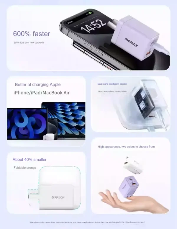 - Compact and powerful charger with dual USB port from Momax.