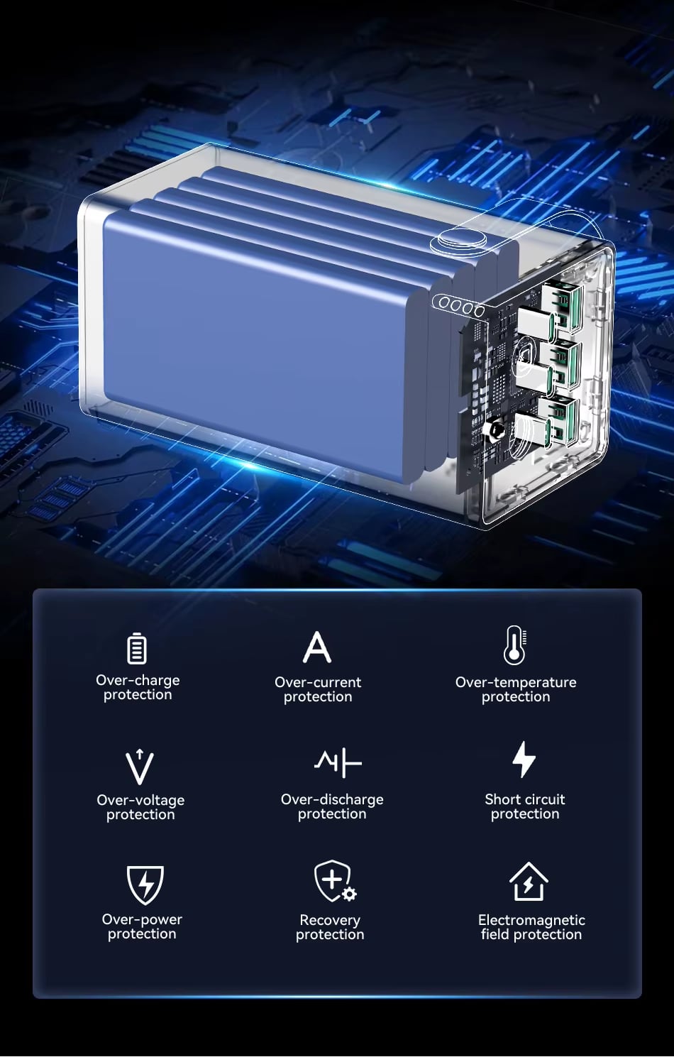 - USB-A1/A2/A3 Output : 5V/3A;9V/2A;10V/2.25A;12V/1.5A