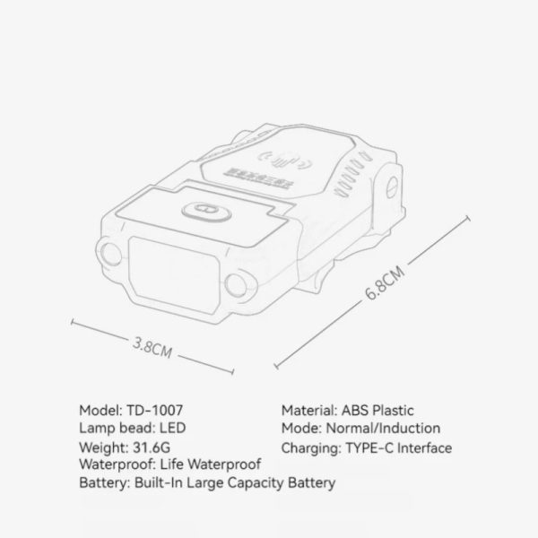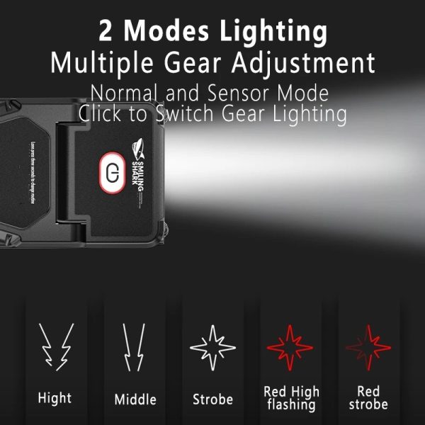 Smiling Shark TD1007 Sensor Headlamp, USB Rechargeable Mini Headlight, Cap On Clip Light, for Outdoor Camping, Night Fishing