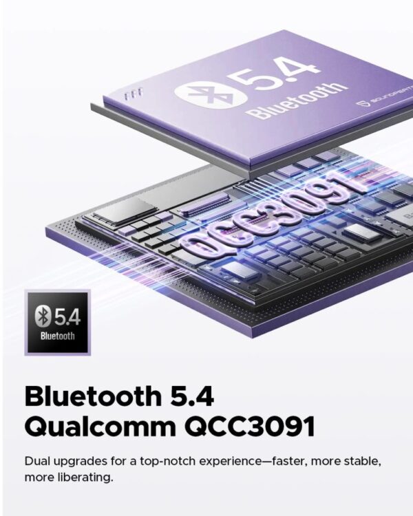 - Bluetooth 5.4, QCC3091 Chip Equipped with the advanced QCC3091 Bluetooth 5.4 chip, the dual upgrade provides a top-notch audio and connectivity experience. Complex environments or long-distance connections remain stable and smooth, while power consumption is further reduced, extending the life of the earphones.