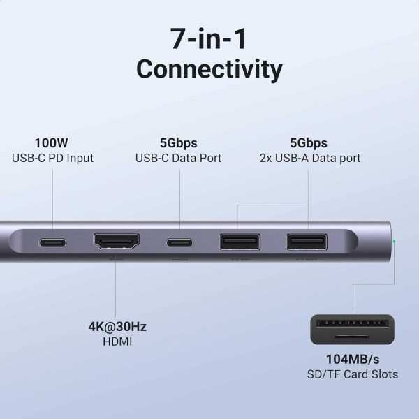 - UGREEN USB C Hub 7-in-1: 5 Gbps USB-C Hub with 4K HDMI, 100W Power Delivery, USB-C and 2 USB-A Data Ports, SD/TF Card Reader, Multiport Adapter for MacBook Air iPad Pro and More Type C Devices