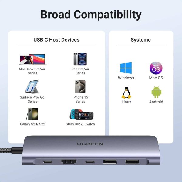 - Ultra-Slim and Sleek Design: UGREEN USB-C hub with a sleek aluminum finish is better for heat dissipation, allows you to expand your laptops’ capabilities at home, office or on the go.