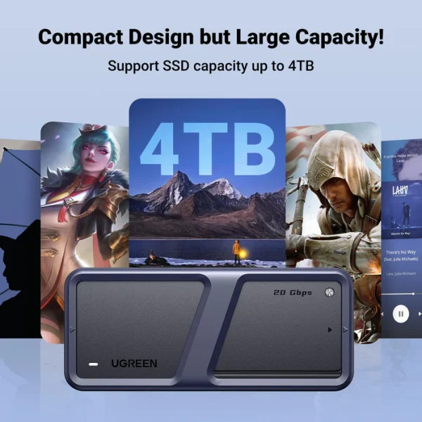 - 【Compact and Portable】Ultra-slim aluminum enclosure with an extra silicone case, portable yet durable, much easier to carry with this external SSD enclosure, ideal for traveling. What You Get: 1×SSD enclosure USB C, 1×USB-C to A cable, 1×User Manual.