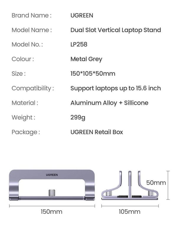 Be the first to review “UGREEN Dual Slots Vertical Laptop Stand Holder Aluminum Adjustable Stand (60643)” Cancel reply