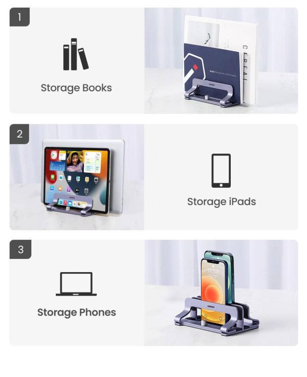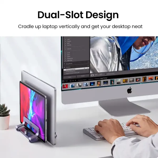 UGREEN Dual Slots Vertical Laptop Stand Holder Aluminum Adjustable Stand (60643)