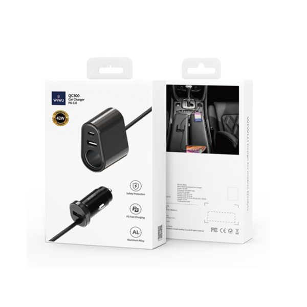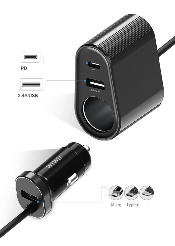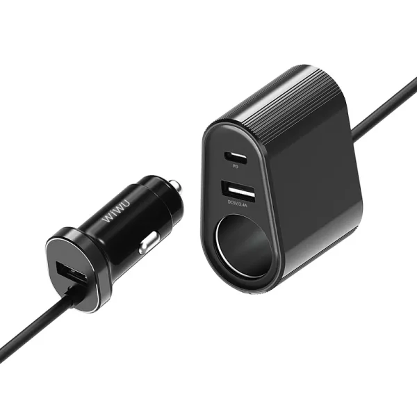 WIWU QC300 Multi-functional Car Charger with Extension Cable