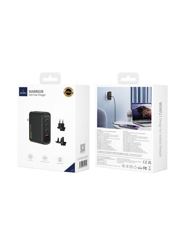 WiWU Warrior 100W GaN Fast Charger, USB-C PD 3.0, 20V/5A Max, 100-240V, Compact Size