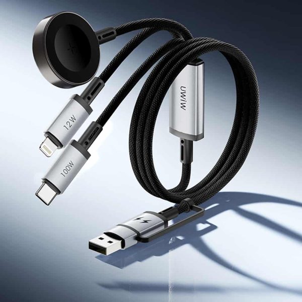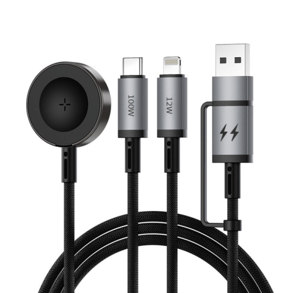 Wiwu Wi-C050 Legend Series 3in1 USB-A and Type-C to Lightning, Type-C Smart Watch Charging Cable 100W 1.2M