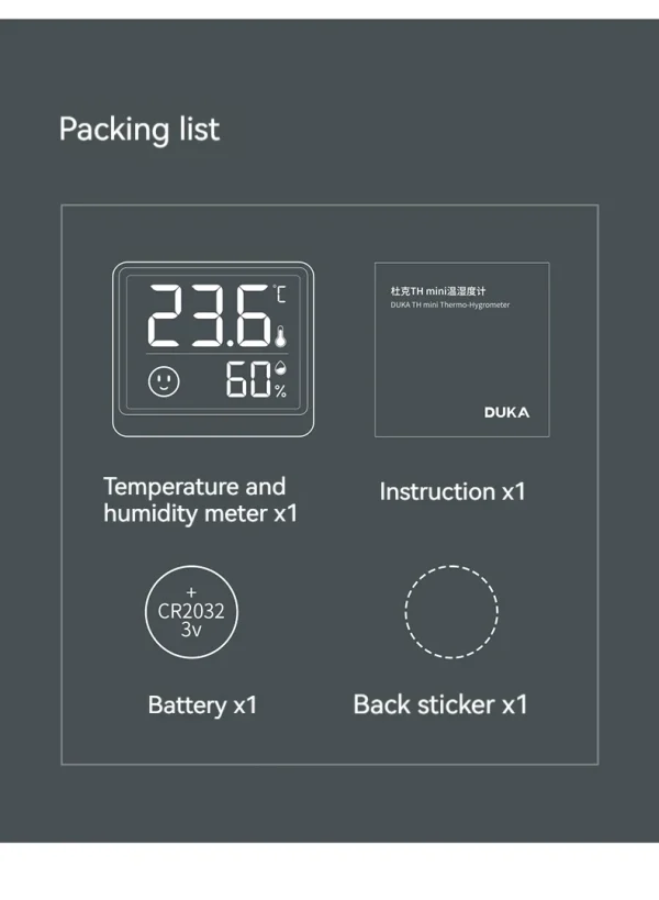 • Sensitive Sensing Precise Monitoring : Built-in high-sensitivity sensor, second-speed re-fresh, the back of the air inlet holes, multi-directional contact with the ambient air, accurate per-ception of temperature and humidity of the subtle changes