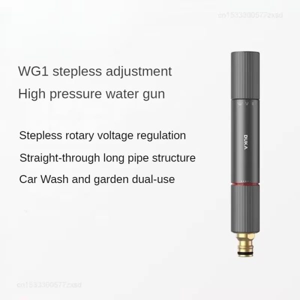- With its universal connectors, the DUKA High Pressure Water Gun is easy to install and ready to use. It is suitable for most household faucets, adding to its convenience and utility.