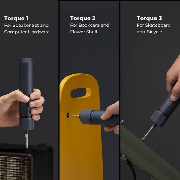 - ONE-HAND POWERHOUSE, TOTAL CONTROL – With our mini drill, you get three torque settings in the palm of your hand. (electric mode: max. 4 N·m / manual mode: max. 8 N·m). And that built-in smart sensor? It’s your guardian angel. Release the button, the rotation stops—no scratched screws, no injured fingers. Just one hand and you’re in complete control!