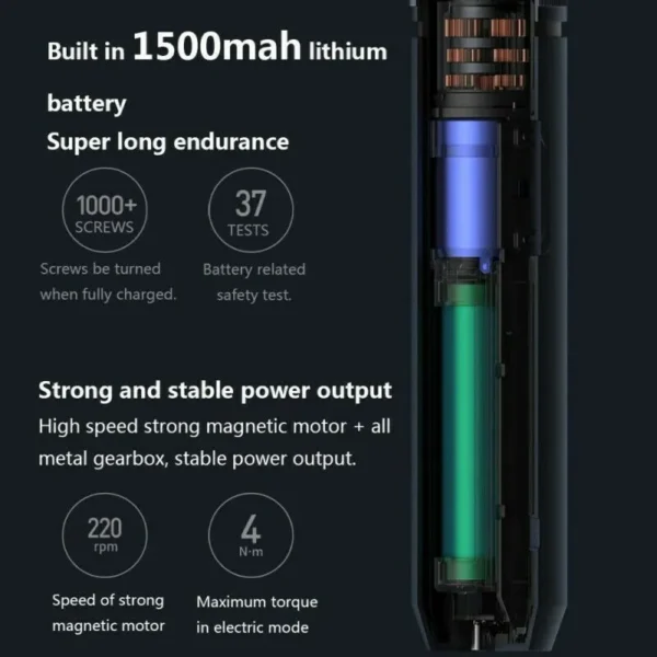 - CHARGE LESS, SCREW MORE! – This power screwdriver packs a punch with its 1500mAh high-capacity battery. After a rigorous 37-step testing process, it offers insane endurance—driving over 1000 screws on a single charge. And when it’s time to recharge? Just plug it into a Type-C port, and you’re done in under 150 minutes. Super easy, super fast, and efficient!