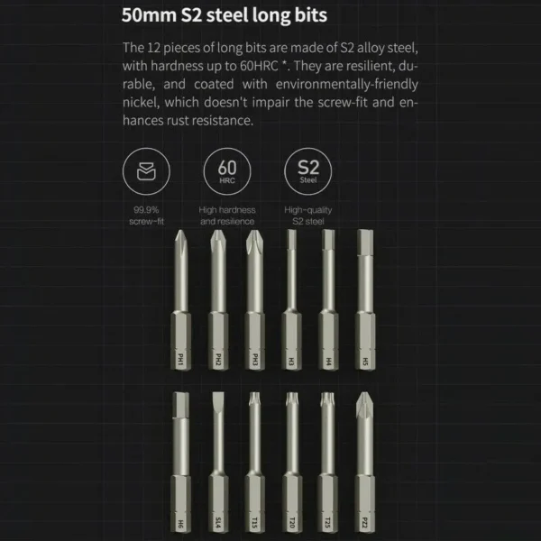 - THE ULTIMATE CONVENIENCE – Five kinds of ultra-tough, 12 S2 steel bits — all rock-solid up to 60HRC for maximum durability. That magnetic tip has you swapping bits in a flash. Plus, the auto-on, no-shadow circular LED lets you work like a master craftsman, even in dimly lit workshops. Whether you’re assembling furniture, DIY-ing your heart out, or doing electrical repairs, this electric screwdriver set is your go-to guy.