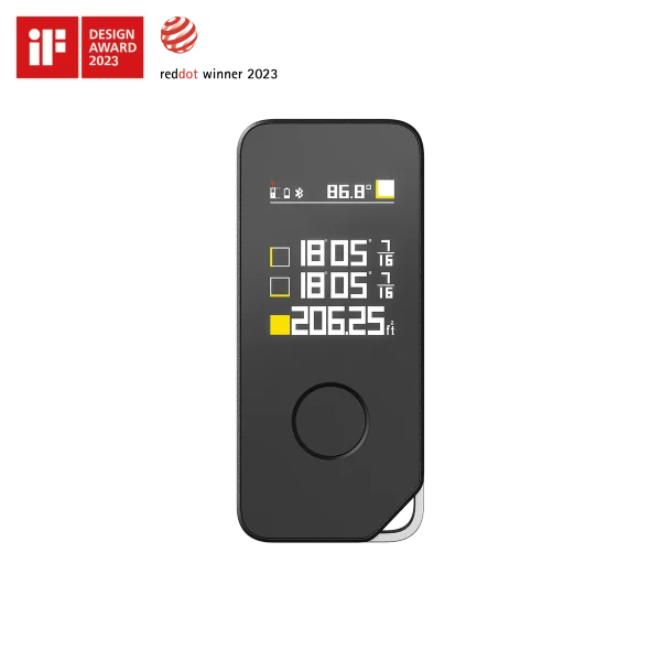• Bluetooth connection: HOTO laser meter connects to the HOTO app via Bluetooth, you can store unlimited measurement data, switch measuring unit (ft/m/in), set the measuring base line, front edge or rear edge.