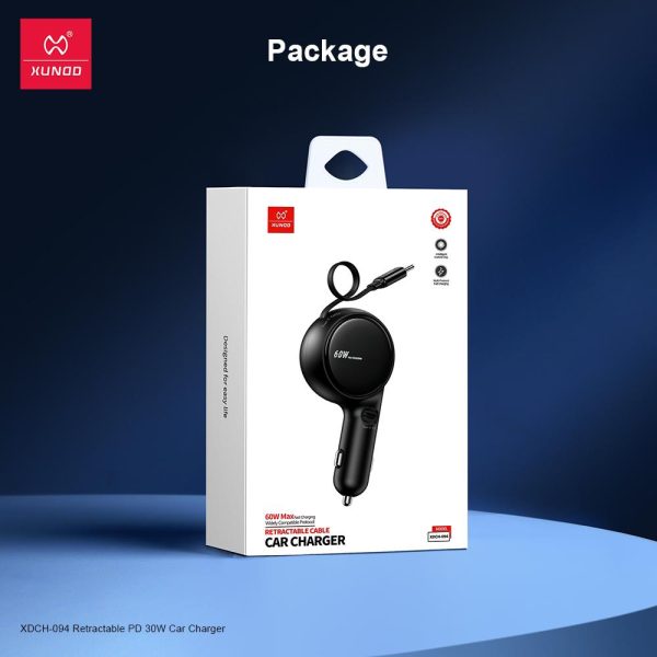 Buy XUNDD XDCH-094 PD 30W Fast Car Charger with Retractable Cable and USB-C Output From Gimmickbd.com In Bangladesh