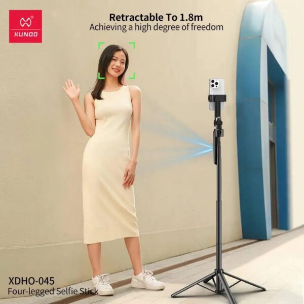 - Package Includes: 1 × XUNDD XDHO-045 Auto-Rotatable Four-Legged Selfie Stick, 1 × Bluetooth Remote, 1 × User Manua
